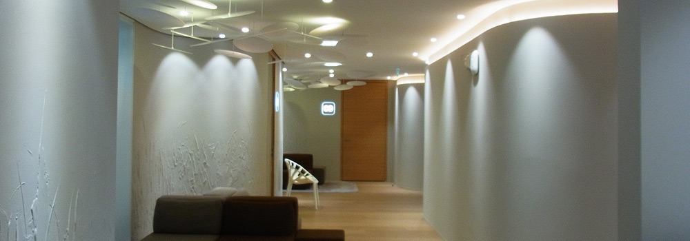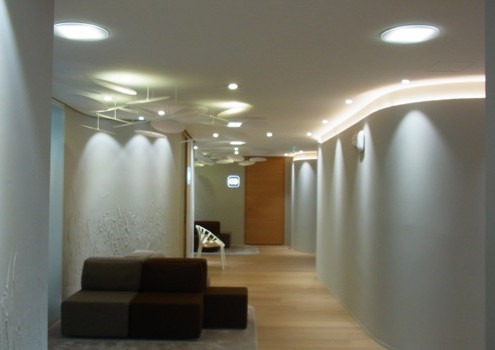 Medgate ist ein Anbieter von ganzheitlicher medizinischer Versorgung. Dem entsprechend  musste neben der reinen Beleuchtungsaufgabe auf eine Öko-Bilanz der eingesetzten Leuchten geachtet werden.