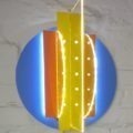 Dieses ungewöhnliche Spiel aus Ebenen und Tiefenwirkung erzeugt eine fast architektonische Anmutung. Die Wahl der kaltweißen und blauen LEDs verstärkt die klare, feinsinnige Atmosphäre des Kunstwerks. Dank integriertem Dimmer lässt sich das Licht individuell anpassen – von akzentuiert und strahlend bis subtil und meditativ.