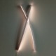 Die Lichtplastik wirkt, als würde sie den Raum ergreifen. Aus der Frontsicht zeigen sich zwei leuchtende Bögen und ein klarer, gerader Lichtstreifen. Schaut man seitlich auf die Plastik, ragt ein markantes Rechteck über die Lichtbögen hinaus. Zwischen diesen Elementen erscheinen feine, leuchtende Punkte – ein dynamisches Zusammenspiel aus Licht, Form und Perspektive.