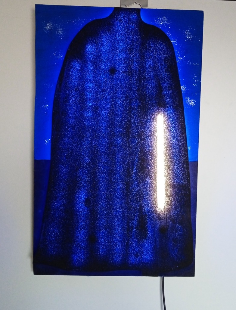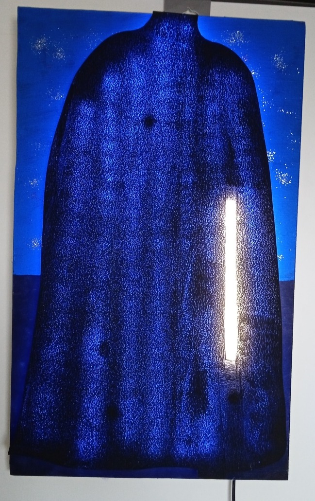 „Schweres Blut“ ist eine moderne LED-Lichtplastik aus Plexiglas, die mit intensivem blauem Licht und verschwommenen Linien beeindruckt. Die Plastik steht für die tief im Körper schleichende Zerstörungswut, die abfällig einen Nachbarn vernichtet, der im Weg steht. Handgefertigt, dimmbar und energieeffizient bietet das Kunstwerk eine starke visuelle Präsenz – perfekt für Lobbys, Showrooms, moderne Wohnräume, Hotels oder Designstudios.